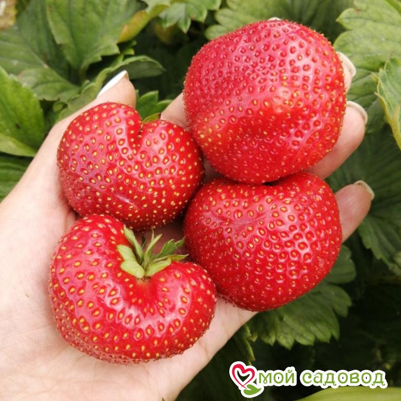 Выведением сорта занимались селекционеры из Голландии. Клубника Сенсация – сорт среднего срока созревания, устойчивый к болезням и вредителям,  разработанный, в первую очередь, для фермеров, которые занимаются круглогодичным выращиванием клубники. Сорт пригоден для культивирования на открытых плантациях, в теплицах и контейнерах. Кусты Сенсации компактные, с вертикальным габитусом и пышной листвой, которая укрывает цветоносы от весенних заморозков, а ягоды от прямых солнечных лучей. Цветоносы мощные, но под тяжестью созревающих плодов полегают.  Вес плодов зависит от агротехники и климата, варьируется от 30 до 50 г. Ягоды округло-конические, к концу сезона не мельчают. Первые плоды могут быть гребневидными или иметь форму сердечка. Посадка и уход за клубникой Посадка: осенью (с середины августа до середины октября) и ранней весной Освещение: яркий солнечный свет Почва: легкая – суглинок, супесь, чернозем или лесные, богатые органикой грунты с водородным показателем pH 5,7-6,2 Полив: утренний, с конца апреля – один раз в 10-12 дней, расходуя на каждый м² участка 10-12 л воды Подкормки: минимум три раза в год: ранней весной, в период бутонизации и в августе Обрезка: когда листья начнут желтеть, покрываться пятнами и сохнуть, их обрезают Размножение: усами (розетками), делением куста